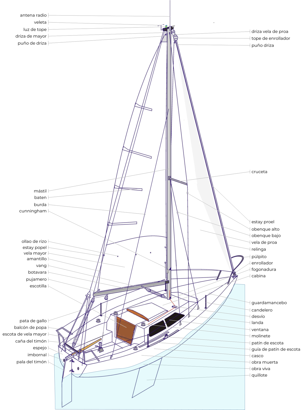Bueno, resulta que los nautas, y especialmente los veleristas —y probablemente Usted va en camino de convertirse en uno de ellos— suelen ser muy respetuosos y celosos de su argot, llegando casi al fundamentalismo.