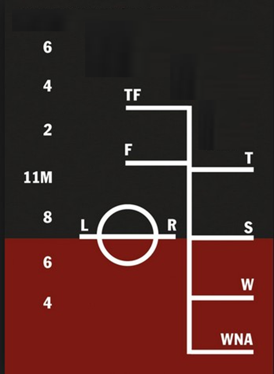 Esa marca está formada por una línea vertical con marcas horizontales que salen hacia la derecha y la izquierda, y que indican la altura del francobordo mínimo que el buque debe mantener cuando navega en las condiciones que indica cada sigla, como sigue: